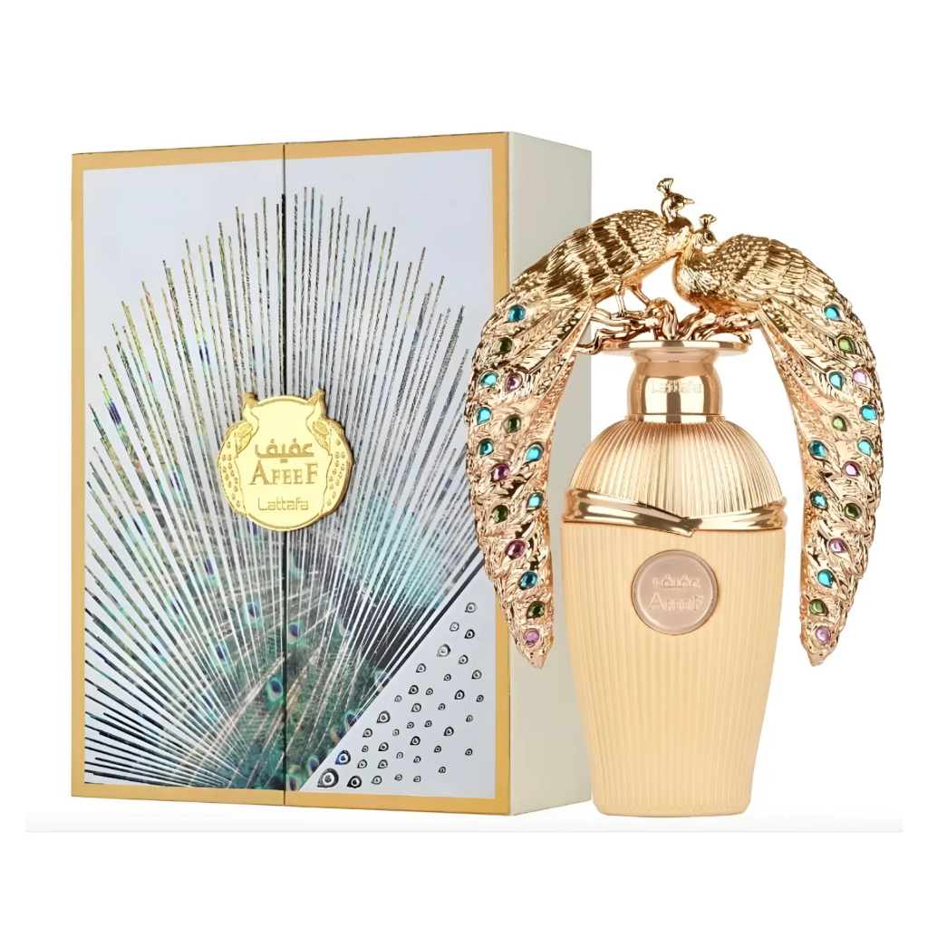 Imaginate un jugo de durazno mezclado con flores blancas y un toque de vainilla… así huele Afeef. Suave, rico y adictivo.”